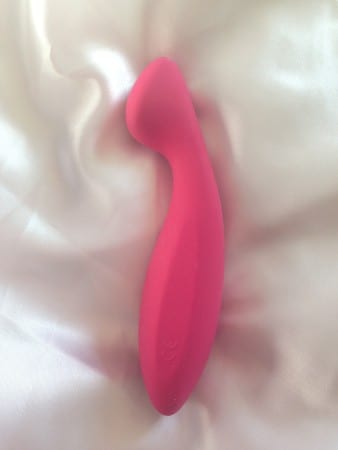 The g-spot stimulation was strong, much more than the We-Vibe Pleasure Mates Collection Dusk, but that is to be expected with the dramatic curve of the toy’s head as opposed to the rounded curve of the Dusk. I actually found that the Mona vibrator and the Pure Wand provided more pleasure than the Glow did, which was surprising, I expected it to be the other way around. I think part of the reason was because I was scared of the Glow. I know I don’t have problems with my pubic bone like some other bloggers do (Beck, for instance, who has pushed two babies out of her body) but I’m still cautious. As usual, I found that rocking the toy up and down was the best way to go, rather than thrusting in and out and that provided more pressure on my g-spot, which was exactly what my body wanted.